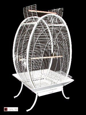 This open top white Persian cage is a masterpiece in elliptical cage design, suitable for medium sized parrots such as African Greys and similar sized birds. Its one of the very few cages available in white and a showpiece of a cage at that. A elliptical shaped cage with two perches, three feeding pots, landing bay, sliding metal tray, wire grill base, opening top, play perch, seed catcher and castors. 100% metal and will last for years, and its bigger than you think it is a huge cage 162cm high - 91cm wide - 71cm deep