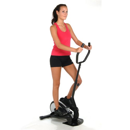 Get a low-impact aerobic workout to firm and tone your buttocks, hamstrings, quadriceps, thighs and calves on this compact elliptical trainer. You can pedal forward or backward to target lower body muscles in different ways, and adjust the tension to control workout intensity. The handle helps keep you steady.